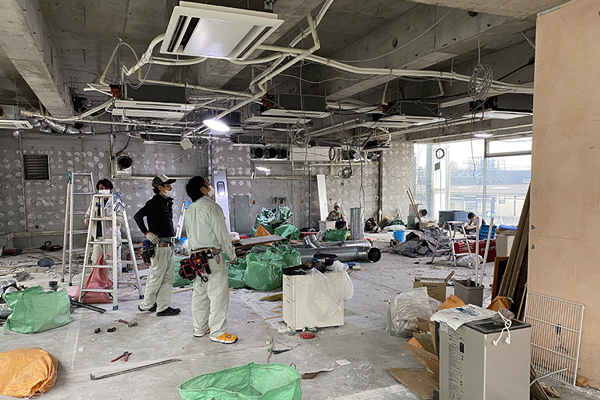 内装に伴う軽天工事、ボード工事、荷揚げ・運搬作業、防水工事に伴う撤去や残土処分も対応可能です。