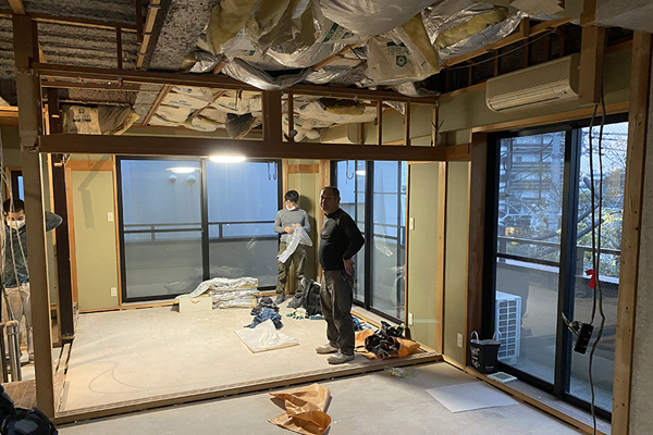 内装に伴う軽天工事、ボード工事、荷揚げ・運搬作業、防水工事に伴う撤去や残土処分も対応可能です。