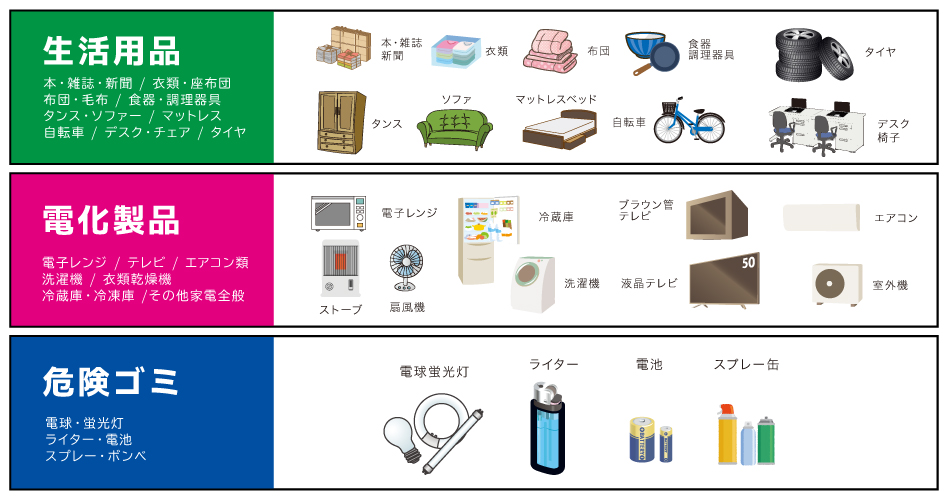 お客様のご自宅やオフィスにお伺いし、不要な家具や家電、雑貨などを迅速かつ丁寧に回収いたします。